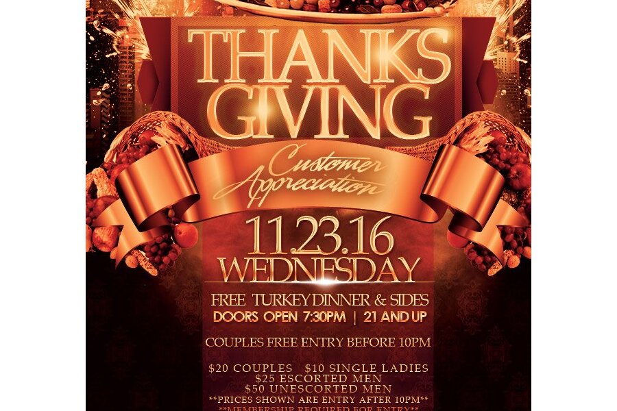 Secrets Hideaway would like to give thanks to all of you that have supported us. Tonight not only are we open, but we would like to have Thanksgiving dinner with you. You read that correctly. We want to show our members how much we appreciate you with a turkey dinner and sides. Please come out and celebrate with the Secrets HideawayTeam for Thanksgiving.