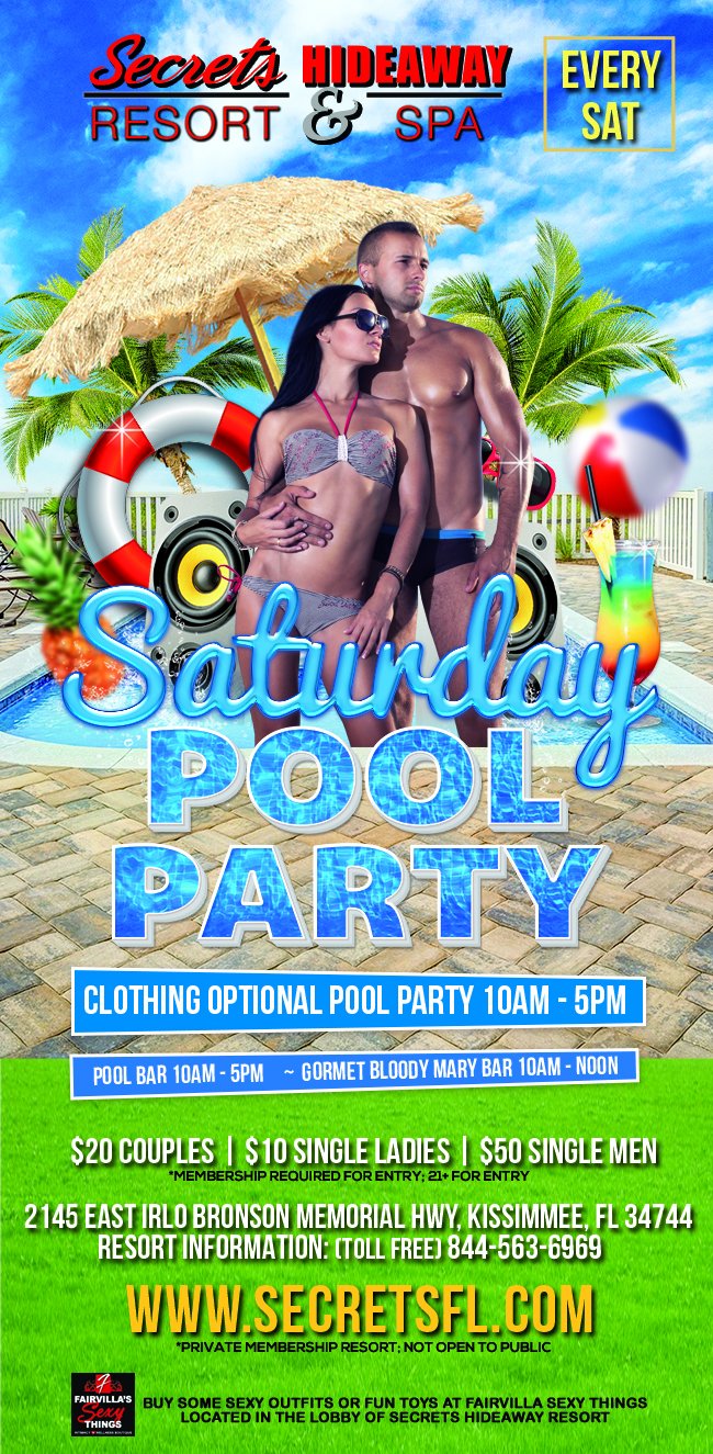 All the parties are located at Secrets Hideaway Resort & Spa®. For reservations: Visit our reservations page Click here for Reservations , call 844-563-6969 or book by clicking the Red "Book a Room" button at the top of each event page.
