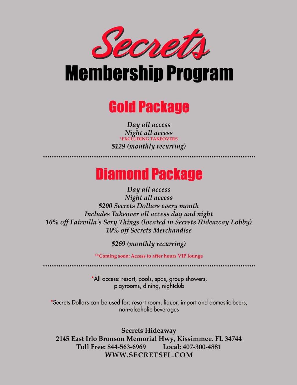 Club-Secret 2145 East Irlo Bronson Memorial Hwy. 192 Kissimmee, FL 34744