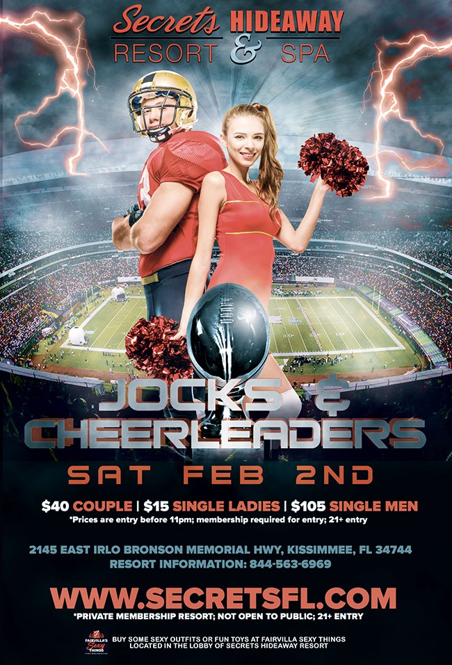 What’s even better than football? How about a wild football party with all your hottest and naughtiest friends?! Tonight, you’re invited to cheer for your team and bare all for the hottest party in football history! With plenty of TVs to screen all the plays, and plenty of time on the clock to score, Secrets Hideaway Resort and Spa is where you need to be to finish the season strong, sexy, happy and ready for a touchdown!