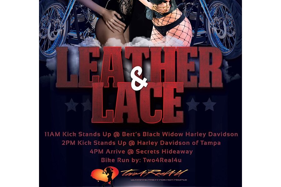 7:30PM Leather N Lace Party inside Club Secret - Get your motors running with those vibrations between your legs.  Wear those chaps and thongs and see all we have to offer.  (Get to the club by 8:30PM to learn the Biker Shuffle with Robert & Christina).
