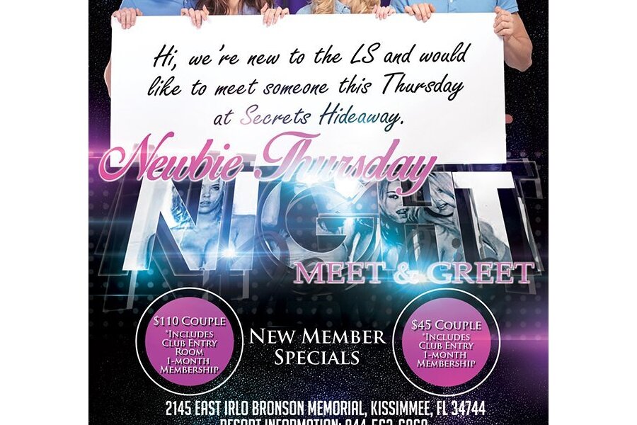 For only $45 per couple, you’ll receive a one-month membership to Secrets Hideaway Resort and Spa, plus club entry to the hottest newbie night in the industry. Really ready to escape the mundane? Stay the night with us in one of our Modest Upgrade Exterior Condos for only $110. Grab a few new accessories at our on-site boutique, Fairavilla’s Sexy Things, and take a dip in one of our two clothing-optional pools, or meet new friends in one of our indulgent hot tubs. Then, get ready to party in the recently updated Club Secret, complete with large dance floor, 5 stripper poles, comfy couches, and the most popular dance music. Really ready to explore the lifestyle? We offer multiple indoor playrooms where you can put on a show, meet new couples, visit our dungeon, and create your wildest fantasy! So, what are you waiting for? Join us on Thursday nights and get ready to create some secrets of your very own!