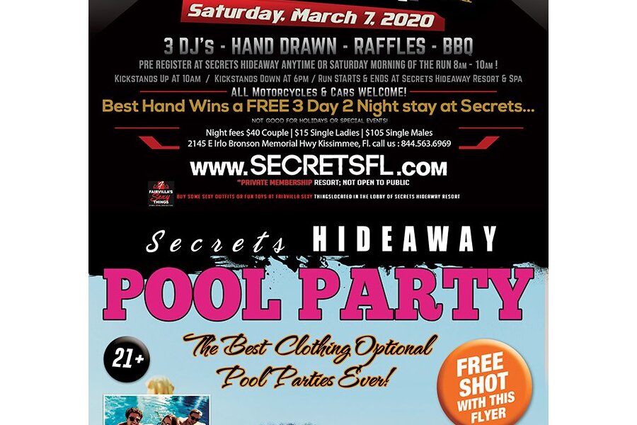 Join Secrets Hideaway for Bikeweek 2020. Pre register at Secrets Hideaway anytime or Saturday morning of the run 8am - 10am!! Best hand wins a FREE 3day 2night stay at Secrets!!!