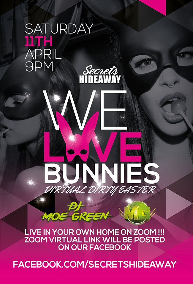 Hippity Hop on over to Zoom for a virtual Dirty Easter party like no other. Forget the peeps and sticky sweet candy, tonight we want to see you get nasty. Ears and tails are in order as all the bad bunnies come out to play in this spring-inspired celebration. Don’t miss out on the sexiest Easter party of the season as we explore what it means to be a bad bunny! The party starts at 9:00pm with our special DJ .