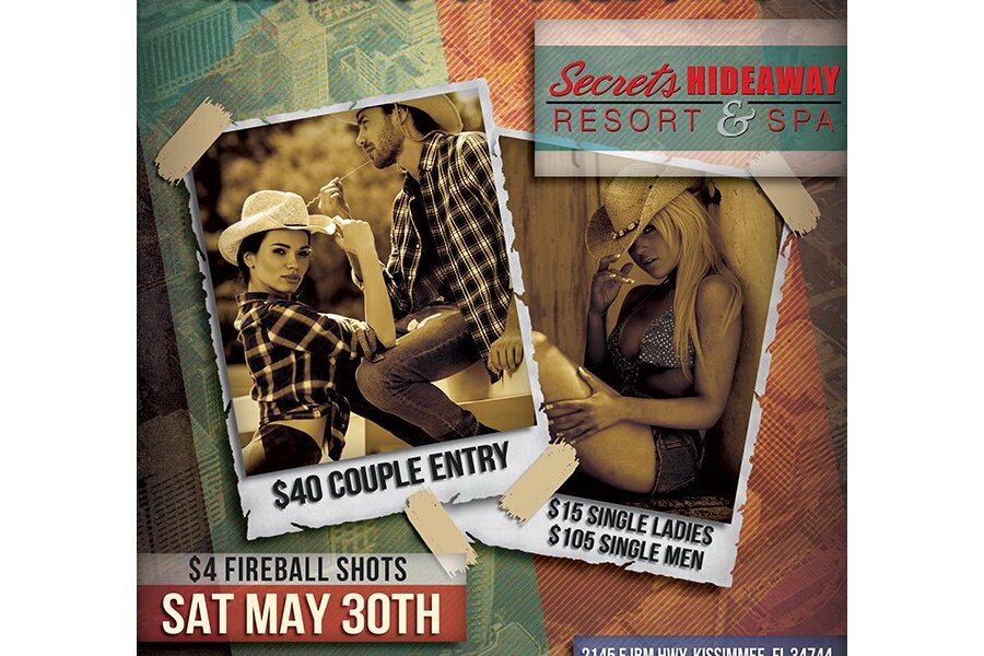 Calling all cowboys! Grab your hat and saddle because we are breaking out our boots tonight at Club Secret! The rodeo is in town so lasso-up a flirtatious playmate and head to Secrets Hideaway Resort and Spa for a night of southern charm and warm hospitality. Everyone loves a cowboy, so hit the dusty trail and make your way to Secrets this Saturday night for a celebration of everything down-home and sexy!
