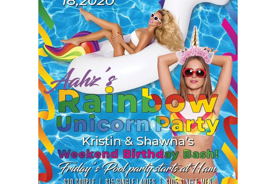 It's a MAGICAL WEEKEND of Rainbows and Unicorns as AahzParty celebrates Kristin and Shawna's birthdays.  Show your pride, or BI-sexual side, with all that is Rainbow.  And be a Unicorn or bring a Unicorn. Let's celebrate the best way we know how, AahzParty and Secrets all the way!!!