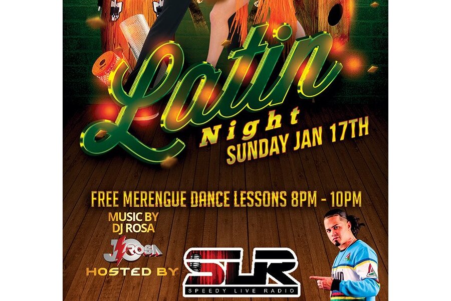 “Latin Night: FREE Merengue Lessons 8pm-10pm”