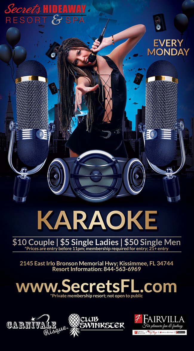 Join us for Karaoke Monday's!! This is a great night to have a couple of drinks and let your inner star shine. So, come on out, meet some sexy new friends, and enjoy all the skimpy outfits. Take the microphone in hand, sing your heart out and rock the night away. We’ve got your entire night covered with menu items available for purchase, starting at 6pm, and two pool-side bars. Take a dip in one of our two clothing-optional pools, or meet new friends in one of our indulgent hot tubs. Grab a few new accessories at our on-site boutique, Fairavilla’s Sexy Things.