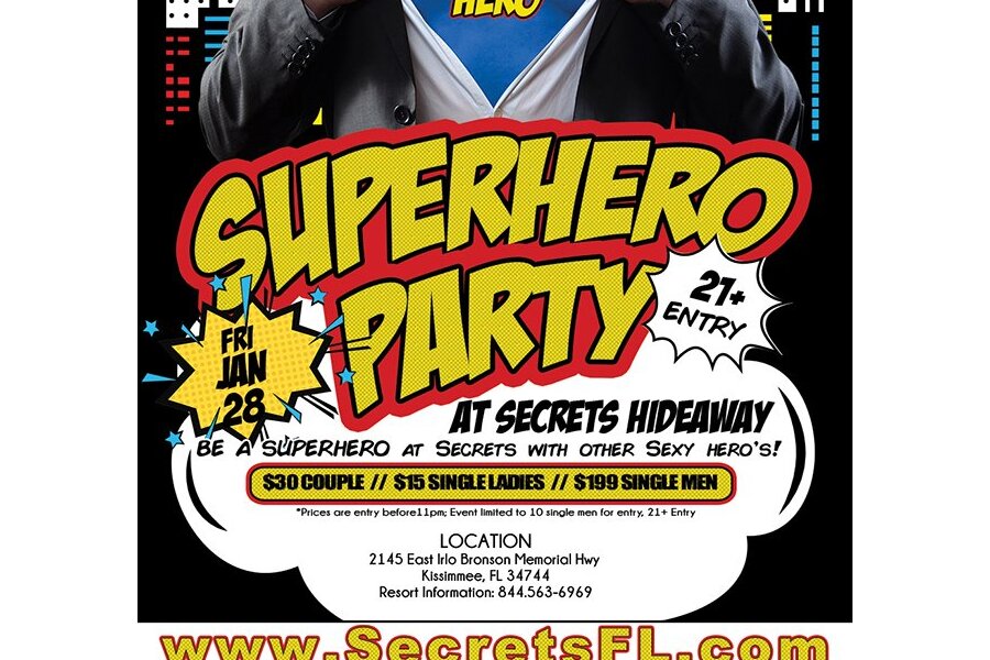 All the parties are located at Secrets Hideaway Resort & Spa®. For reservations: Visit our reservations page Click here for Reservations , call 844-563-6969 or book by clicking the Red "Book a Room" button at the top of each event page.