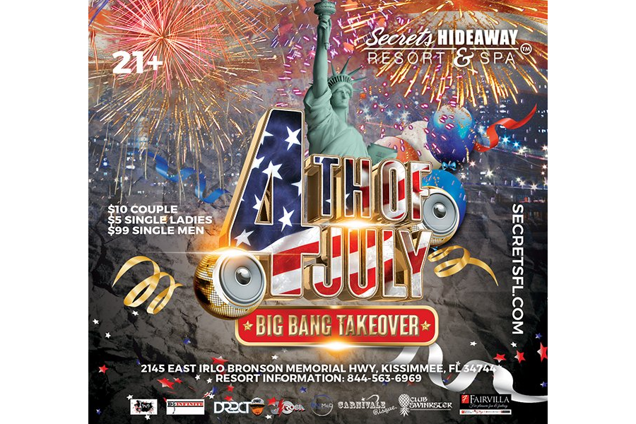 We’re having a party on the Fourth of July, there will be food and fun to put a sparkle in your eye. We hope that you’ll come and plan to stay, and party with us on Uncle Sam’s Birthday. He wants YOU to be at join Secrets Hideaway™ for the BIGGEST Independence Day celebration in the nation. With music, dancing, drinks, and all your sexy friends, tonight will be an event you don’t want to miss.