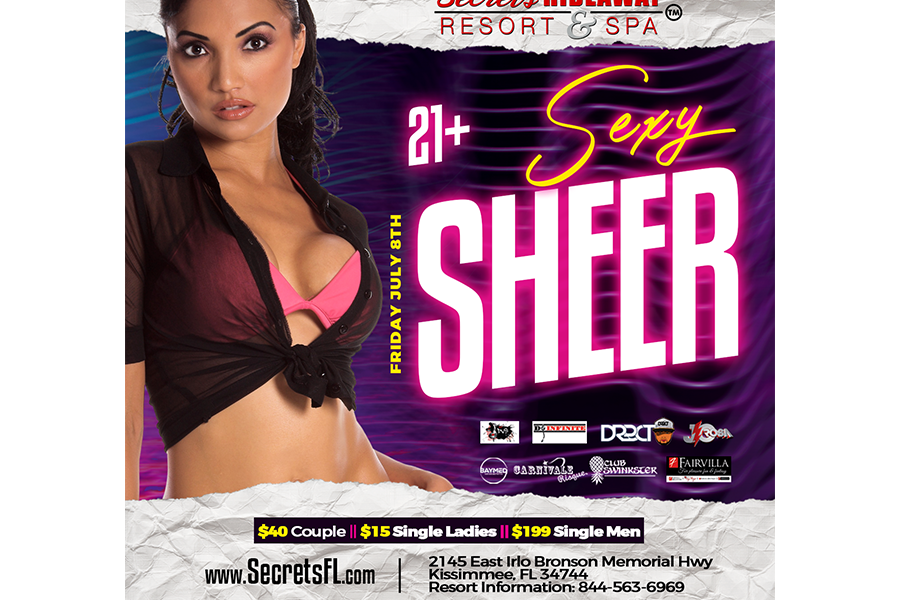 There is nothing sexier than almost bare, and tonight we want to see how close to nude you can be. Drape your body in sheer sexiness and tease all your friends tonight at Secrets Hideaway Resort and Spa. With an enormous dance floor, two bars, 5 stripper poles and plenty of plush seating, you’ll find new and adventurous ways to push the boundaries and see just how sexy sheer can really be!