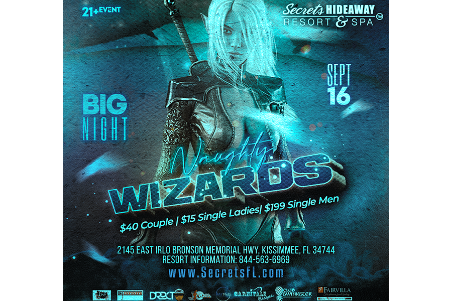 The naughty wizards come out to play—all at Secrets Hideaway™. Forget the mortal-weekend blues and let loose with the sexiest party in town! Celebrate Saturday the way it’s meant to be - with flowing drinks, beautiful friends, skimpy outfits, and unlimited opportunity to create your own secrets! The wizarding world has nothing on you.