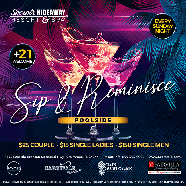 The weekend isn’t over yet! So, grab your crew and take advantage of Couples half-priced Sundays at Club Secret®! Dress-up or dress-down, the choice is yours! Free your inhibitions and join us poolside for the hottest music, coldest drinks, and the sexiest friends.