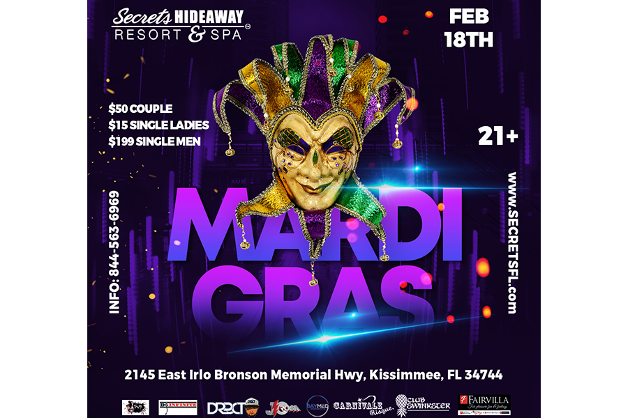 There’s no party like a Mardi Gras party and, if you can’t make it to New Orleans, there’s no better place to celebrate than at Secrets Hideaway Resort and Spa™. Dazzle and shine this Saturday night as you join all your sexiest friends for fantasy filled evening of masqueraded merriment. Get ready to unmask your excitement and make some merriment for the biggest party in the nation. This Saturday night, we celebrate Mardi Gras, Secret’s style!