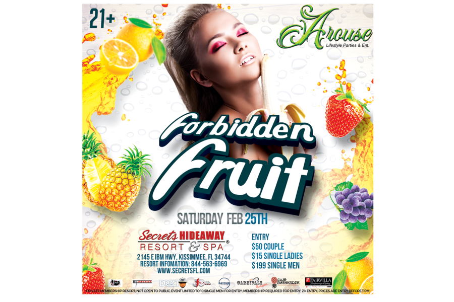 Saturday, February 25th Arouse Lifestyle Parties and Secrets Hideaway Resort & Spa® bring you The Mrs. Arouse Birthday Bash starting off with The Arouse Forbidden Fruit Party. But first start off pool side with good friends, good food and some ice-cold adult beverages. Join in on some of the wild contest and games or just set back and enjoy. After soaking up the Florida sun pull out those sweet costumes and come join Arouse inside Club Secret® for the ultimate entertainment and dance the night away!