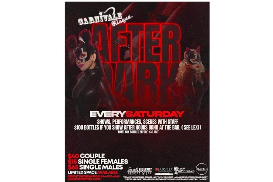 It’s 2:00am and the party's just getting started in Club Swinskter. Indulge yourself in Carnivale Risque's AFTER DARK party where you can experience delicious pop-ups, shows, and exclusivity. This She-Bang is where you can party with the staff as the Carnivale Risque crew tantalize and tease your senses with the enigmatic world of kink. The staff’s playfulness will provide an atmosphere full of sexy and sensual fun that cannot be experienced anywhere else. Let Carnivale Risque take you on an adventure of delicious debauchery and tasteful taboos. Join us AFTER DARK inside Club Swinskter and slide down the rabbit whole for an experience that you will always remember and can't get anywhere else.