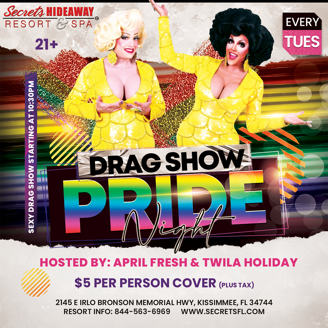 Every Tuesday is PRIDE TUESDAY. Join us and enjoy this electrically charged night with the stunningly energetic and beautiful performers with our super-hot Drag Show at 10:30pm. The night will be filled with erotic music, dancing, and our DJ will be spinning today’s top hits. We will have $5 Sex on the beach, $5 Long Island, $5 Blue Long Island, and $15 Corona Buckets all night long.