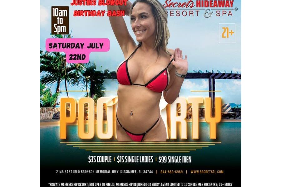 Celebrate Saturday in the sexiest way possible at Secrets Hideaway’s™ clothing-optional pool party! The weather is hot, so come strip down and cool off poolside. Join all of your sexiest friends at Secrets Hideaway Resort and Spa™ for a day in the sun, drink in hand, hot music, and even hotter friends. Our courtyard pool area and two outdoor tiki bars are the perfect location to let loose, be free, and celebrate summer!