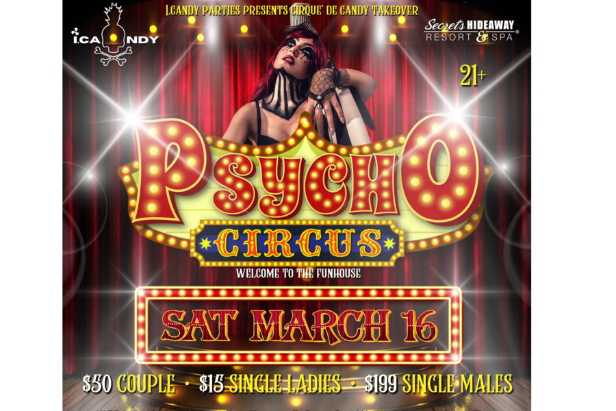 SATURDAY, MARCH 16th Get ready to step into a world of mesmerizing madness at "Psycho Circus: Welcome to the Funhouse" on Saturday, March 16th, as part of the sensational Cirque' De Candy Takeover weekend. Taking place at the electric Secrets Hideaway in Kissimmee, Florida, this event is bound to be an unforgettable experience. Beginning at 9:00pm, brace yourself for an epic night of entertainment as three talented DJs spin their electrifying beats inside Club Secrets, while three more DJs keep the party going poolside. With pulsating music filling the air both indoors and outdoors, get ready to let loose and dance the night away in the mysterious atmosphere of the funhouse. But that's not all—prepare to be amazed by the extravagant array of circus and carnival entertainers that will grace the event, adding an extra dose of enchantment to the evening. As you explore the venue, you'll stumble upon captivating carnival booths and games that will keep you engaged and thrilled throughout the night. With i.Candy Parties hosting this sensational affair, you can be assured of a night filled with non-stop excitement and unforgettable moments that will leave you yearning for more.