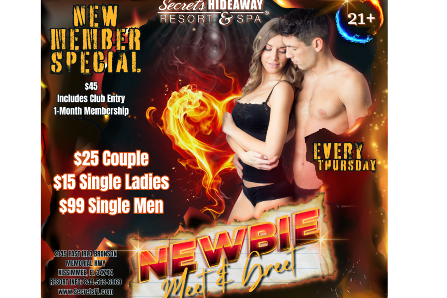 Every Thursday night, Secrets Hideaway invites you to dive into a world of exciting possibilities at our Meet & Greet Newbie Night. If you're new to the lifestyle or simply looking to expand your circle of like-minded friends, this is the perfect event for you. Imagine a vibrant atmosphere filled with diverse and open-minded individuals, all eager to explore the realms of sensuality and connection. For an incredible New Member Special price of just $45 per couple, you not only gain access to the hottest newbie night in the industry but also receive a one-month membership to Secrets Hideaway Resort and Spa. It's an opportunity to step into a realm of pleasure, where you can create your own secrets and embark on a journey of exploration in the company of fellow enthusiasts.
