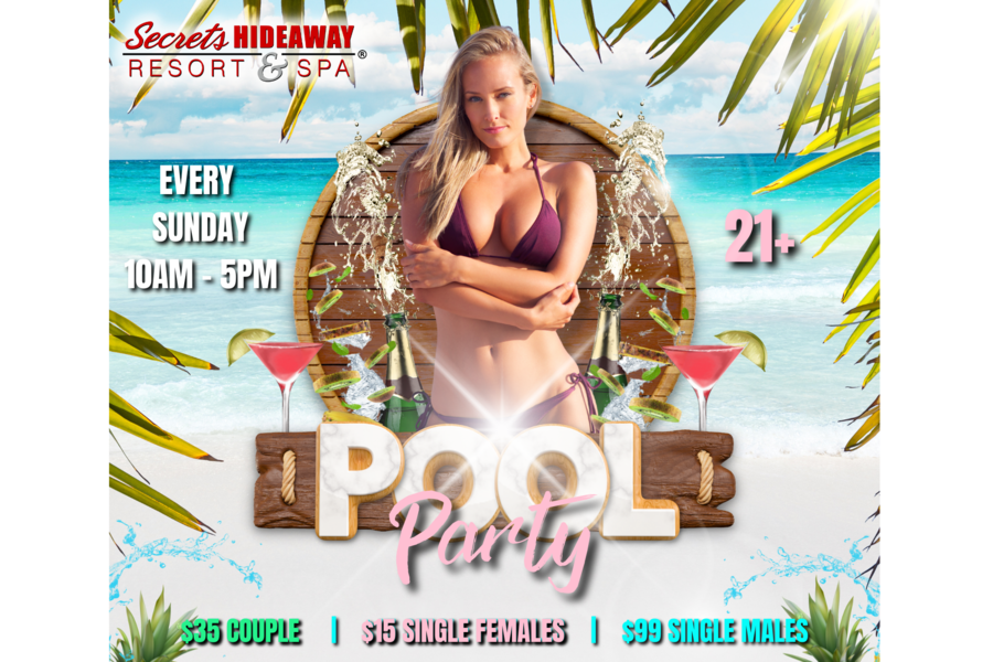 At the Sunday Pool Party, the atmosphere is a delightful blend of leisure and excitement. Meet new friends, catch up with your loved ones, and relish in the freedom of being your authentic self. For those seeking the epitome of comfort and privacy, reserving your own cabana elevates your experience. Complete with power outlets, soft lighting, curtains, and a ceiling fan, these cabanas offer a sanctuary where you can unwind, connect, and create unforgettable memories. Sundays are redefined at Secrets Hideaway as you spend the day just the way you've always dreamed – immersed in sunshine, surrounded by good company, and embracing the sheer freedom of being yourself. It's the perfect way to wrap up your weekend, setting the tone for a fresh, positive start to the week ahead.