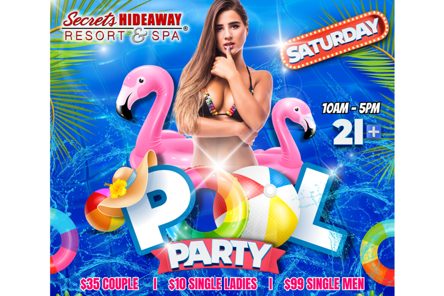 At the Saturday Pool Party, the atmosphere is charged with an electrifying blend of sensuality and sunshine. For those seeking the ultimate in luxury and privacy, reserving a pool-side cabana offers eight hours of opulent relaxation, where you can bask in the sun-kissed ambiance and indulge in arousing fun. Alternatively, slip away to the inviting playrooms, where you can create your own heat and explore the depths of your desires. Whether you're lounging in luxury, dancing under the open sky, or discovering the intimate corners of Secrets Hideaway, the Saturday Pool Party promises a day of unbounded pleasure, liberating experiences, and unforgettable connections with like-minded souls. Dive into the weekend with a splash of excitement, celebrating summer in the sexiest, most enticing way imaginable.