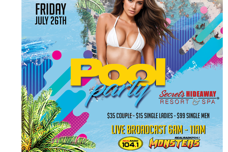 Secrets Hideaway is thrilled to host RealRadio 104.1's Monsters in the Morning LIVE broadcast on Friday, July 26th from 6am - 11am. Join us for an unforgettable morning as Russ Rollins and the Monsters crew bring their unique blend of humor and energy to our poolside paradise.