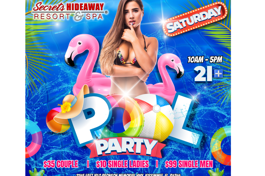 Get ready to indulge in the epitome of Saturday bliss at Secrets Hideaway's exclusive Saturday Pool Party, held every Saturday from 10 am to 5 pm. Shed your inhibitions along with your clothes and immerse yourself in the epitome of sensual freedom at Orlando's hottest clothing-optional pool event. With the sun beaming down and the temperature rising, Secrets Hideaway invites you to strip down, cool off, and join your sexiest friends for a day of pure, unadulterated pleasure. Picture yourself lounging poolside, drink in hand, surrounded by the rhythmic beats of hot music and the sizzling presence of even hotter friends. Secrets Hideaway Resort and Spa's courtyard pool area, complemented by two outdoor tiki bars, forms the perfect backdrop for this seductive rendezvous, where you can let go, be free, and celebrate the heat of summer in the most alluring way possible.