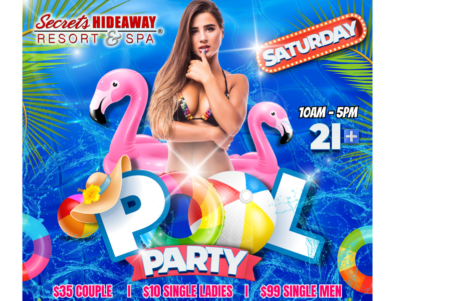 At the Saturday Pool Party, the atmosphere is charged with an electrifying blend of sensuality and sunshine. For those seeking the ultimate in luxury and privacy, reserving a pool-side cabana offers eight hours of opulent relaxation, where you can bask in the sun-kissed ambiance and indulge in arousing fun. Alternatively, slip away to the inviting playrooms, where you can create your own heat and explore the depths of your desires. Whether you're lounging in luxury, dancing under the open sky, or discovering the intimate corners of Secrets Hideaway, the Saturday Pool Party promises a day of unbounded pleasure, liberating experiences, and unforgettable connections with like-minded souls. Dive into the weekend with a splash of excitement, celebrating summer in the sexiest, most enticing way imaginable.