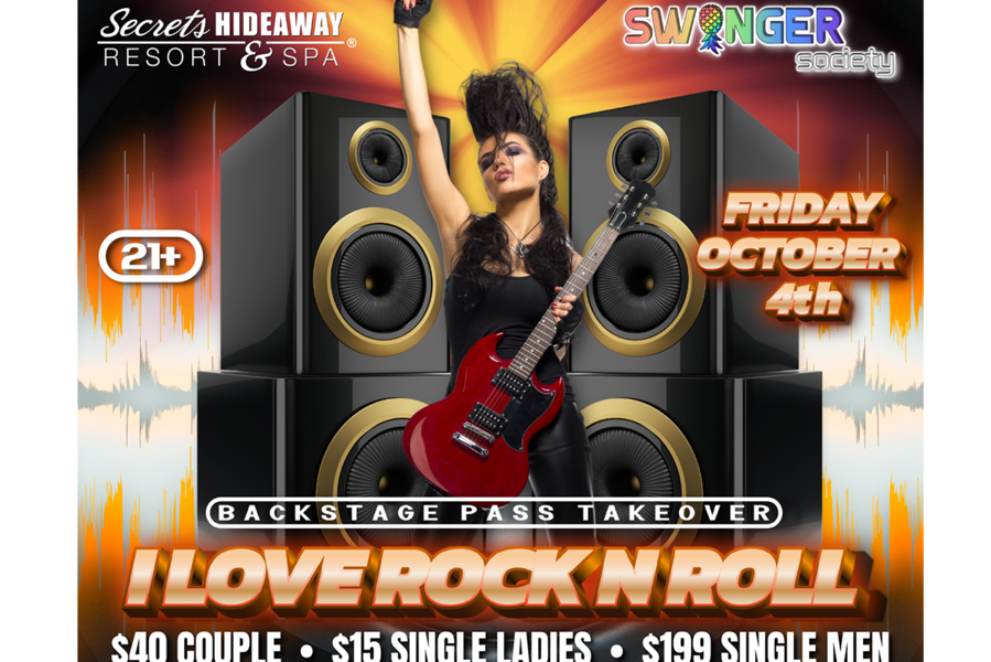 Get ready to rock and roll all night long at the "I Love Rock N Roll" event presented by Swingers Society, happening on Friday, October 4th at Secrets Hideaway. This electrifying affair invites attendees to immerse themselves in the timeless rhythms and rebellious spirit of rock music, creating an atmosphere where passion, energy, and excitement collide on the dance floor. Whether you're a hardcore rocker or just love to groove to the beat, this event promises an unforgettable night of music, dancing, and uninhibited fun in the company of like-minded individuals.