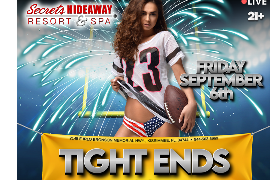 As the night unfolds, immerse yourself in the playful energy of the event, where fantasies come to life and inhibitions are left behind. Whether you're engaging in playful banter with fellow guests, dancing to the beats of top DJs, or simply enjoying the vibrant ambiance, the "Tight Ends" event promises an unforgettable evening of naughty fun and sensual exploration. Join us on September 6th for a night of excitement, laughter, and seduction at Secrets Hideaway, where every touchdown is celebrated and every fantasy is fulfilled.