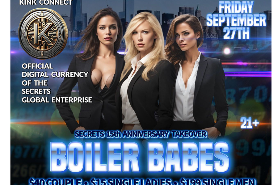 Secrets Hideaway presents "Boiler Babes" event on Friday, September 27th. Step into the high-stakes world of Wall Street, where business tycoons and power players gather for an evening of seductive sophistication. Embrace the thrill of the trading floor as you dress to impress in your sharpest attire, channeling the allure and ambition of the financial elite.