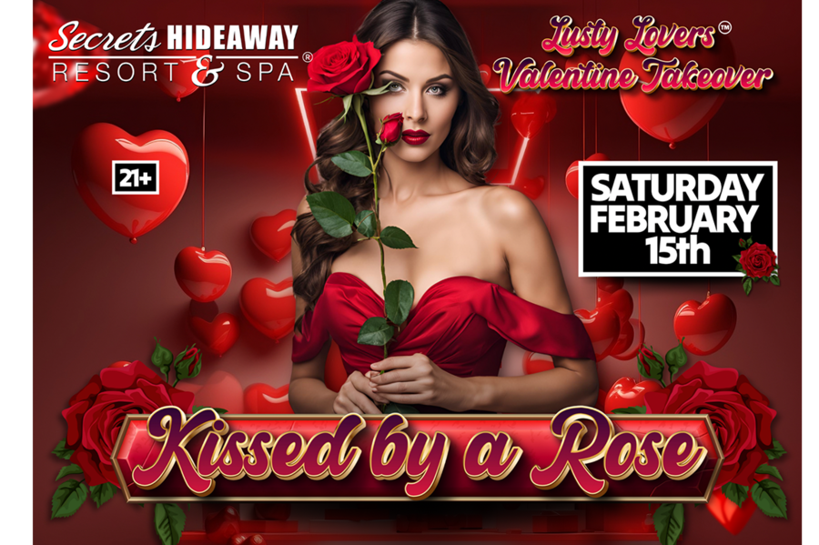 Secrets Hideaway presents Lusty Lovers™ Valentine "Kissed by a Rose" on Saturday, February 15th. Prepare for an evening of unparalleled romance and seduction as we transform Secrets Hideaway Resort and Spa™ into the ultimate playground for lovers. Tonight is where passion meets elegance, and every moment is infused with sensuality.