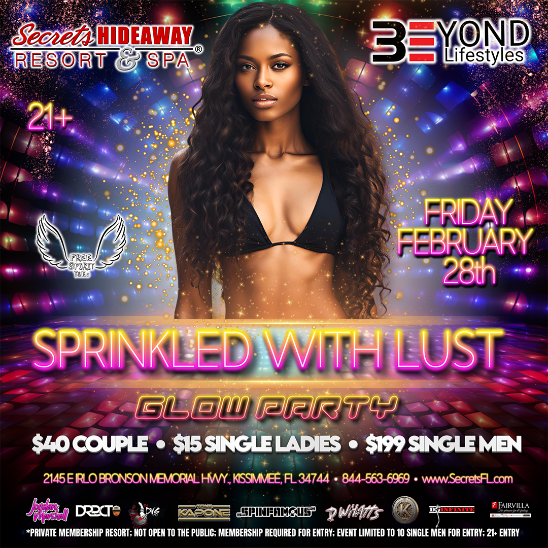 Get ready to light up the night as Beyond Lifestyles presents the "Sprinkled with Lust GLOW Party" on Friday, February 28th. Step into a world where UV lights and neon colors bring out the sexy and erotic side of the evening. Whether you're covered in glowing body paint or dressed in the hottest neon outfits, you'll find yourself immersed in a tantalizing atmosphere that’s charged with energy and excitement.