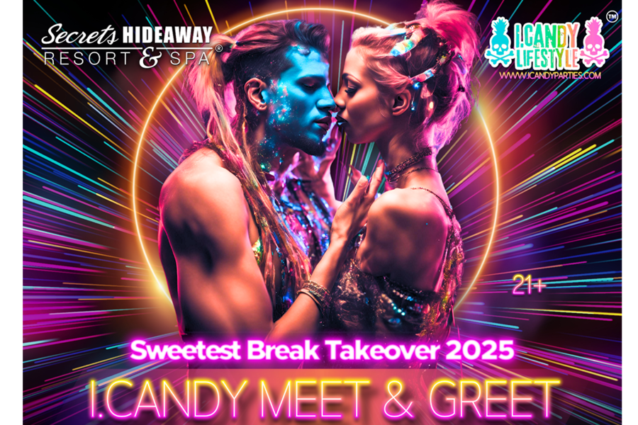 i.Candy Lifestyle™ Sweetest Break Takeover 2025 kicks off with the "i.Candy Meet & Greet" on Wednesday, March 19th, at Secrets Hideaway lifestyle resort. This event is the perfect starting point for meeting like-minded couples in a relaxed and welcoming setting. Dive into a sexy, fun-filled weekend where every moment is an opportunity to connect with others who share your interests and desires. Whether you're new to the lifestyle or a seasoned enthusiast, the meet and greet is designed to foster friendships and ignite sparks that can last throughout the weekend.