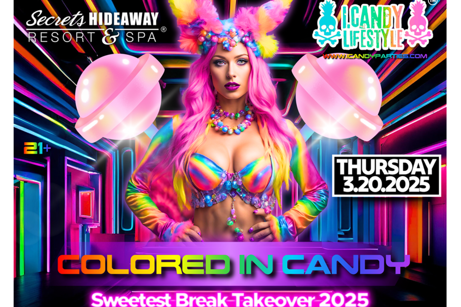 Join us for a vibrant and deliciously sweet event as i.Candy Lifestyle™ Sweetest Break Takeover 2025 presents "Colored in Candy" on Thursday, March 20th, at Secrets Hideaway lifestyle resort. Immerse yourself in a world where color bursts from every corner, inspired by the whimsy and wonder of candy. i.Candy invites you to revel in a confectionery fantasy, with guests encouraged to don their most colorful, candy-inspired outfits, turning the venue into a living rainbow of hues and delights.