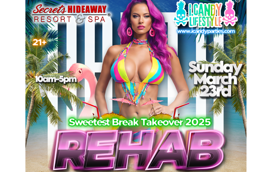 i.Candy Lifestyle™ Sweetest Break Takeover 2025 presents the "Rehab Pool Party" on Sunday, March 23rd, from 10am to 5pm at Secrets Hideaway lifestyle resort. After a wild night of partying, what better way to recover than with a luxurious day at the pool? It's time to grab a cabana, strip down to bare essentials, and relax by the pool, or sip on your favorite drink at the poolside bar. But don’t be fooled—this party is far from over!