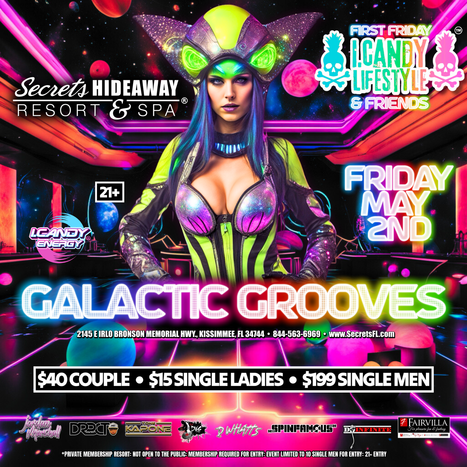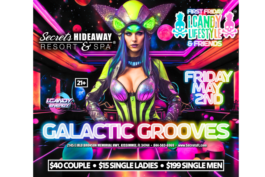 i.Candy & Friends presents "Galactic Grooves" on Friday, May 2nd at Secrets Hideaway—an event that invites you to lose yourself in an interstellar erotic rave like no other. Enter a neon-splashed universe, where pulsing beats guide you through a cosmic odyssey of dancing, flirtation, and electric vibes. Every corner bursts with otherworldly color, creating the perfect playground for those ready to explore a night of sultry adventure and uninhibited fun. From glowing body paint to laser-lit décor, this celestial party beckons you to step out of the ordinary and into a galaxy of limitless possibility.