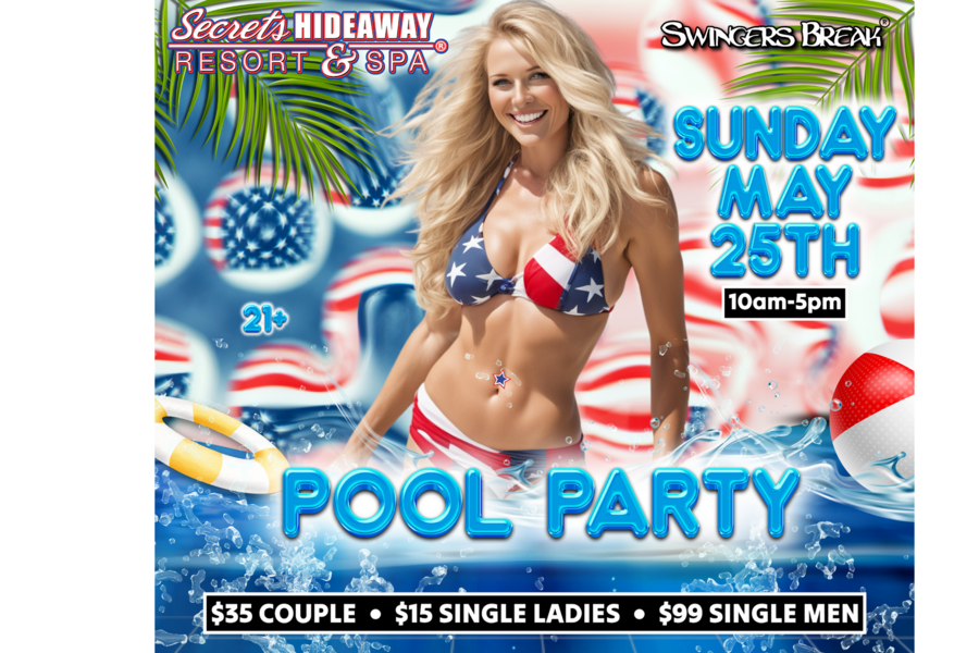 Sundays have never been more liberating! Join us every Sunday from 10 am to 5 pm for the ultimate relaxation and rejuvenation at Secrets Hideaway's Sunday Pool Party. Whether you're extending the weekend fun with Sunday Funday or winding down from a wild adventure, this day is tailored for pure bliss under the warm Florida sun. Forget about swimsuits – at this clothing-optional paradise, come as you are and stretch out in one of our two inviting pools, letting the radiant sunshine kiss your skin as you bask in complete relaxation. Our bubbling hot tubs offer a soothing escape, and the conversation pool provides the ideal setting to make new friends, sparking conversations that linger with the promise of exciting connections.