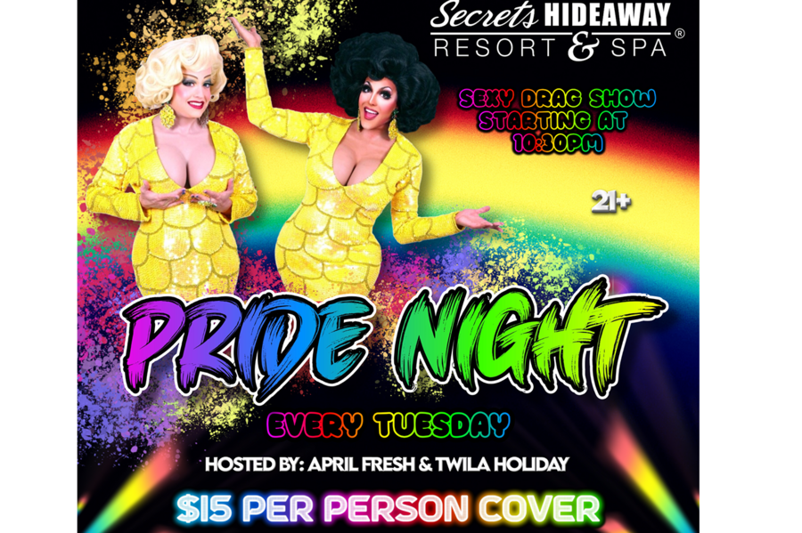 Secrets Hideaway Pride Night is not just a party; it's a declaration of love, acceptance, and the freedom to be who you are. The event will be filled with vibrant energy, dazzling lights, and an ambiance of acceptance and unity. As the clock strikes 10:30pm, the Sexy Drag Show will kick off, showcasing the incredible talent and creativity of drag artists, leaving the audience in awe. This event provides a safe and welcoming space for everyone, regardless of gender identity or sexual orientation, to come together, celebrate diversity, and embrace the power of love. With Twila Holiday and April Fresh as your hosts, prepare for an unforgettable night of pride, empowerment, and a whole lot of fabulousness that will leave you inspired and uplifted.