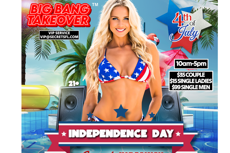 Kick off the Big Bang™ Celebration in style with our "Independence Day Pool Party" on July 4th, from 10am to 5pm at Secrets Hideaway. Celebrate America’s birthday under the sun with refreshing cocktails, energizing music, and a carefree, clothing-optional environment that sets the stage for an unforgettable daytime soiree. Slip into your sexiest swimwear—or none at all—and dive into a realm of festive fun, where every splash in the pool is accompanied by laughter and the beats of the holiday’s best party tunes.