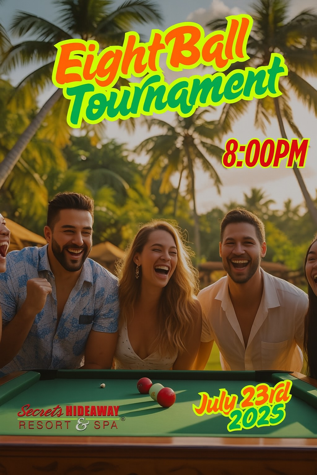 Get ready to cue up an unforgettable evening at our Eight Ball Pool Tournament Date Night! Step into a world of neon lights, upbeat tunes, and friendly rivalry as couples and friends go head-to-head in a thrilling eight ball showdown. Whether you’re a pool shark or just in it for the laughs, you’ll love the electric atmosphere and compete for awesome prizes—all while making memories that’ll last long after the final eight ball drops. Don’t miss out on the most exciting date night in town—grab your partner, bring your A-game, and join us for a night of fun, flair, and fantastic company! Let the good times roll!