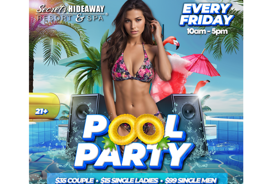 The Friday Pool Party at Secrets Hideaway invites you to unwind and celebrate the start of the weekend amidst a vibrant, tropical atmosphere. For those seeking a touch of luxury, renting a cabana offers eight hours of pure indulgence, providing a comfortable and intimate space to enjoy the company of your favorite friends. It's an opportunity to escape the routine, bask in the warm Florida sun, and connect with like-minded souls in an environment that exudes a sense of freedom and camaraderie. Starting your weekend off right with the Friday Pool Party guarantees an unforgettable experience, surrounded by the laughter, energy, and excitement of your Secret's friends, making it the ideal way to set the tone for an amazing weekend ahead.