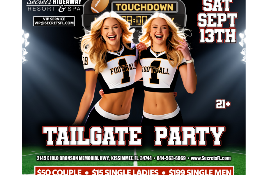 Fire up the pre‑game excitement—Secrets Hideaway is throwing the ultimate Tailgate Party, Saturday, September 13th, and you’re invited to bring the heat in your sexiest team gear! Whether you flaunt a barely‑there jersey, tight crop top, or body‑painted logo, this is the place to show your colors and flaunt your curves before kickoff. Think ice‑cold drinks served from the back of tricked‑out tailgate trucks, mouth‑watering game‑day bites, and a playlist of stadium anthems that keep the energy sky‑high. From playful cornhole showdowns to flirty sideline selfies, every corner is packed with spirited fun and friendly rivalries that spark instant connections.