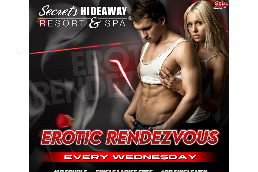 Every Wednesday, Secrets Hideaway transforms into a haven of desire and connection with its weekly event, "Erotic Rendezvous." This midweek escape promises an evening where sensuality intertwines with excitement, providing couples with a space to explore their deepest fantasies. The atmosphere is charged with an alluring energy, creating an environment that encourages like-minded individuals to come together, share intimate moments, and revel in the freedom of self-expression. This is a night where passion takes the forefront, inviting couples to step into a world where desires are explored and sensuality is celebrated. This enigmatic event promises a thrilling and liberating experience where like-minded souls gather to engage in an evening of intimate connections.