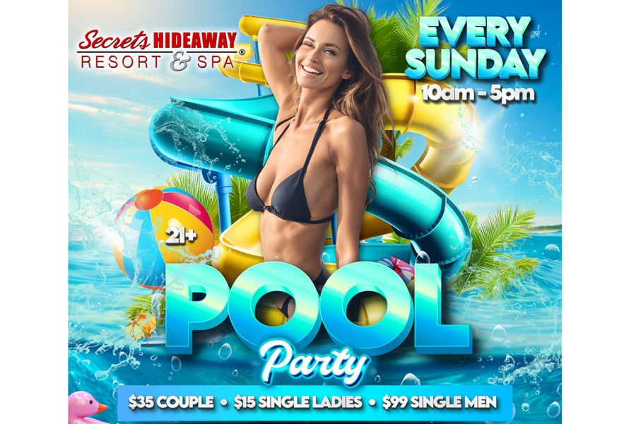 At the Sunday Pool Party, the atmosphere is a delightful blend of leisure and excitement. Meet new friends, catch up with your loved ones, and relish in the freedom of being your authentic self. For those seeking the epitome of comfort and privacy, reserving your own cabana elevates your experience. Complete with power outlets, soft lighting, curtains, and a ceiling fan, these cabanas offer a sanctuary where you can unwind, connect, and create unforgettable memories. Sundays are redefined at Secrets Hideaway as you spend the day just the way you've always dreamed – immersed in sunshine, surrounded by good company, and embracing the sheer freedom of being yourself. It's the perfect way to wrap up your weekend, setting the tone for a fresh, positive start to the week ahead.