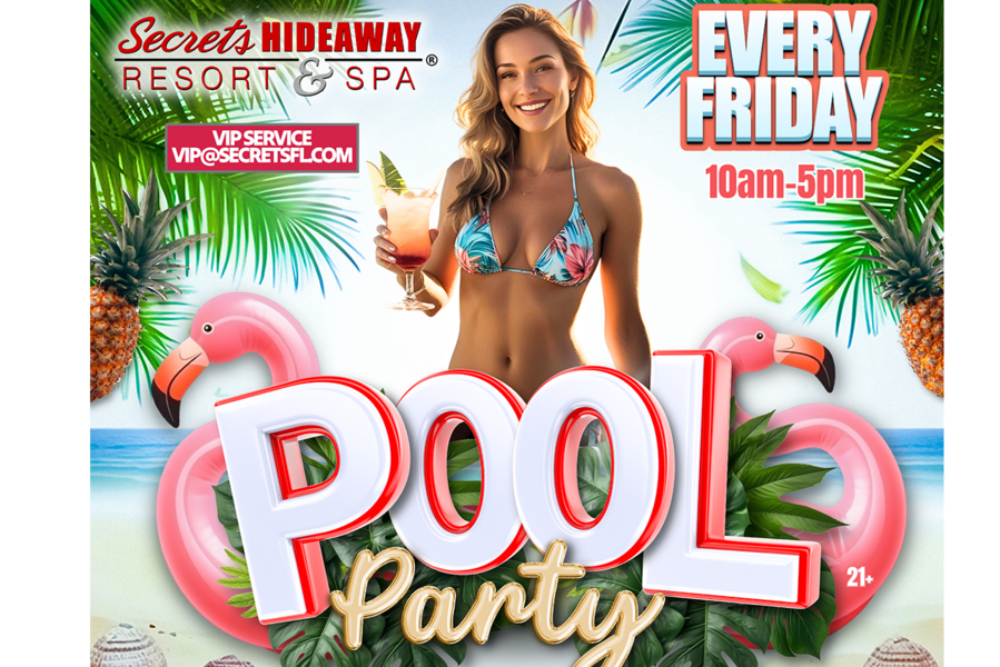 The Friday Pool Party at Secrets Hideaway invites you to unwind and celebrate the start of the weekend amidst a vibrant, tropical atmosphere. For those seeking a touch of luxury, renting a cabana offers eight hours of pure indulgence, providing a comfortable and intimate space to enjoy the company of your favorite friends. It's an opportunity to escape the routine, bask in the warm Florida sun, and connect with like-minded souls in an environment that exudes a sense of freedom and camaraderie. Starting your weekend off right with the Friday Pool Party guarantees an unforgettable experience, surrounded by the laughter, energy, and excitement of your Secret's friends, making it the ideal way to set the tone for an amazing weekend ahead.