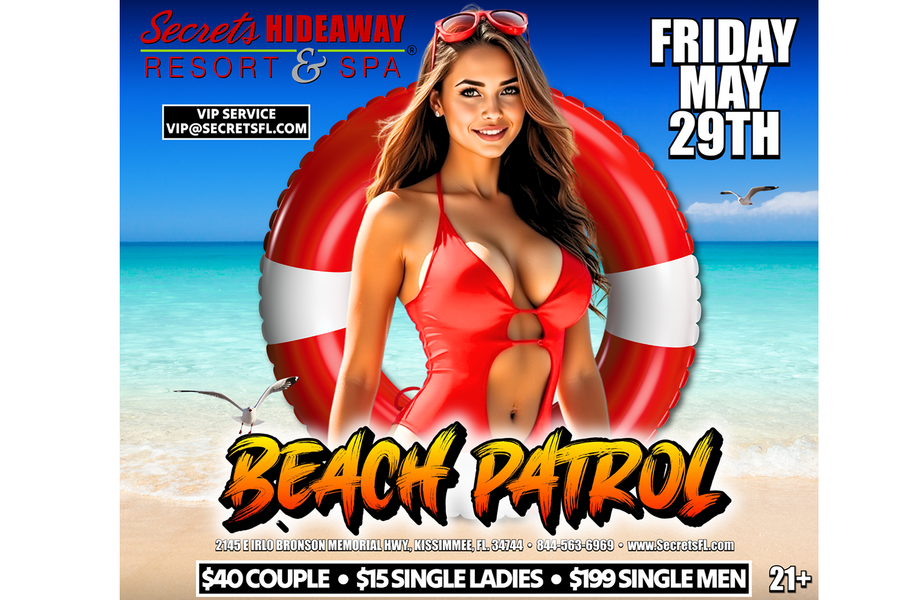 As the music pumps and the lights shimmer like ocean waves, the dance floor becomes a shoreline of temptation where every glance feels like a rescue mission waiting to happen. Mingle with other beach babes and lifeguard hotties, splash into the energy of the night, and let the tropical beats pull you deeper into the fantasy. “Beach Patrol” promises a night of wet-and-wild fun, unforgettable connections, and lifeguard-level heat—so suit up and get ready for your sexy save at Secrets Hideaway!