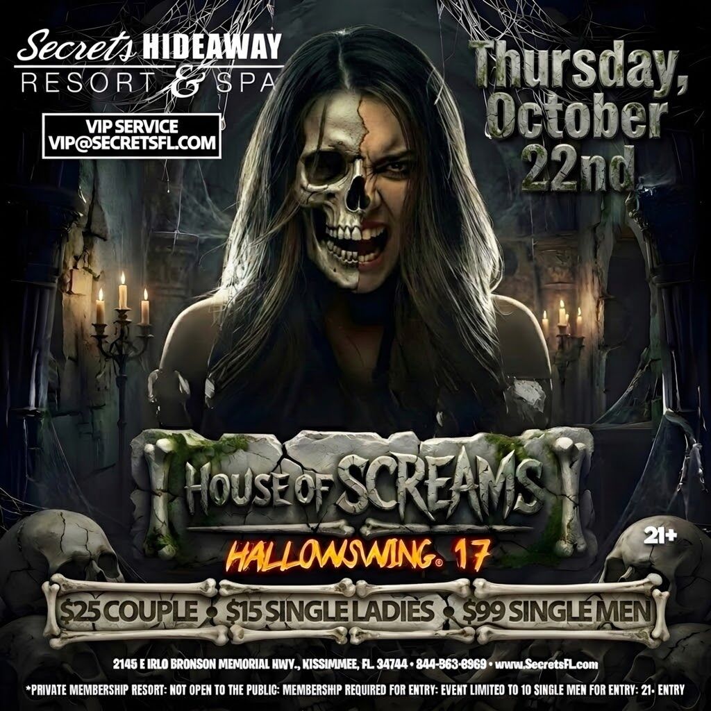 Hallowswing® 17 returns to Secrets Hideaway Resort & Spa for another unforgettable Halloween takeover, bringing ten nights of thrills, chills, and seductive excitement to the hottest lifestyle resort in Florida. We kick off this year’s wicked festivities on Thursday, October 22nd with “House of Screams”, a night where terror meets temptation. Step inside if you dare as the resort transforms into a haunted playground filled with eerie lighting, spine-tingling sounds, and creatures of the night lurking around every corner. From ghosts and ghouls to twisted clowns and dark spirits, this opening night sets the tone for 10-days of nonstop Halloween mischief.
