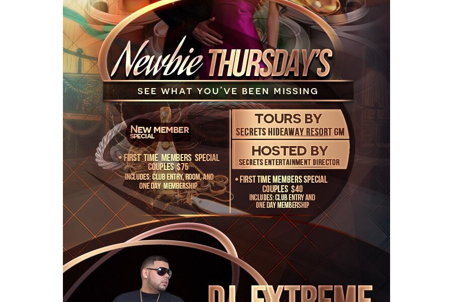 Welcome to Newbie Thursday located at the luxurious clothing optional Secrets Hideaway Resort and Spa. Have you ever wondered what goes on at Secrets Hideaway? Why don’t you come see what you’re missing? Secrets Hideaway is a private, members only, clothing optional, swingers lifestyle resort.